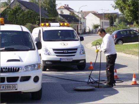 Reinigung von Hauskanalanschlüssen mit Hochdruck..